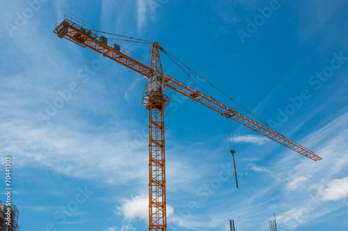 building and crane under construction against blue sky