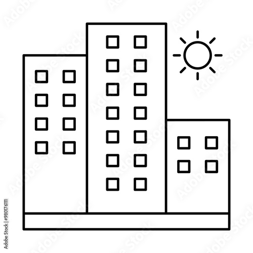 building company of office workspace and business with outline icons