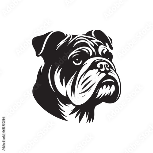 bulldog, dog, vector, silhouette, pet, canino, breed, sturdy, strong, outline, animal, graphic, design, illustration, art, black, white, domestic, mammal, ear, tail, loyal, companion, muscular, wrinkled, face, short, stocky, playful, friendly, intelligent, standing, sitting, walking, running, contour, shape, minimal, shadow, profile, template, icon, logotype, print, clip art, stencil, decorative, drawing, vignetting