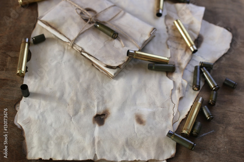 bullet and retro paper on the table