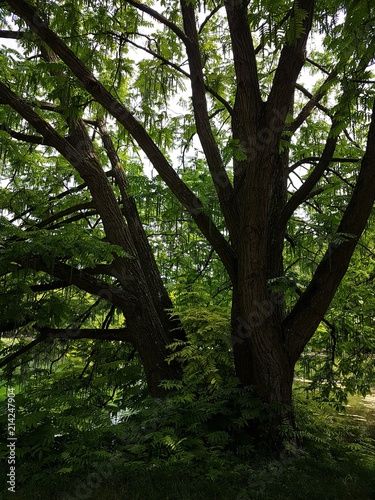 tree, forest, nature, green, forest, countryside, park, leaf, spring, leaf, summer, rail, twig, light, environment, oak, boot, natural, aged, outdoors, grass, sun