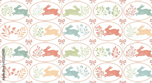 Bunnies and Floral Patterns in a Whimsical Design for Seasonal Decor