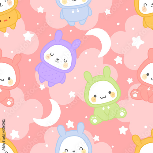 Bunny Rabbit wearing hoodie, Kawaii seamless pattern, vector illustration background, easter wallpaper for kids