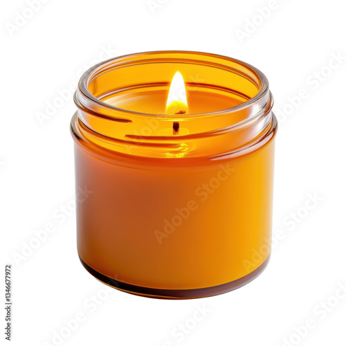 burning orange candle in a glass jar