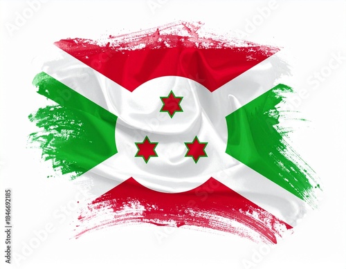 Burundi Flag with Three Stars in Painted Brushstroke Style