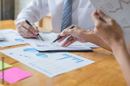 Business adviser analyzing financial figures denoting the progress Internal Revenue Service checking document. Audit concept
