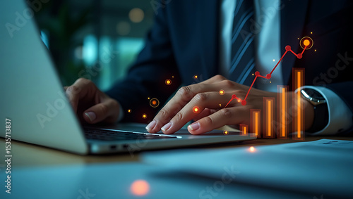 Business and finance planning data analysis, digital technology innovative investment strategies, foster economic growth and achieve sustainable digital market leadership in competitive