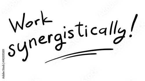 Business Buzzword: work synergistically - vector handwritten phrase