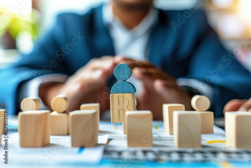 Business Concept of Team Leadership Engagement with Wooden Figures Representing People and a Leader in a Collaborative Environment