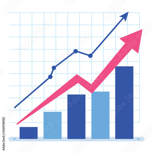 "Business Growth Chart Vector – Bar Graph with Upward Trend and Rising Arrow for Financial Success Concept"