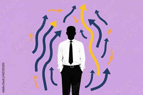 Business Growth Success Concept Professional: Corporate Achievement with Directional Arrows and Executive Silhouette Design