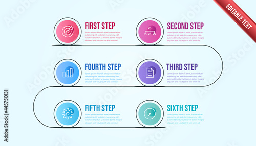 Business infographic six steps. Colorful modern timeline infographic template.