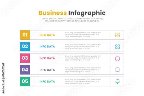 Business infographic template design. Timeline concept with 5 steps. Can be used for presentations, workflow layout, diagram, banner, web design, Vector illustration.