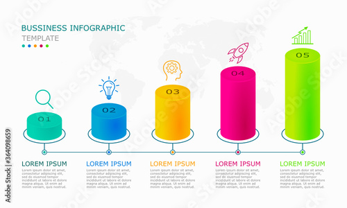 Business infographic Vector with 5 steps. Used for presentation, information, technology, website, work.