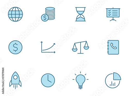 Business line icon set in two colors isolated on white background. Business blue outline icons for web design, mobile apps, ui design and print.