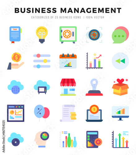 Business Management Icons Pack. Flat icons set. Flat icon collection set. Simple vector icons.