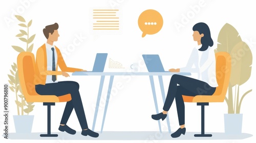 business, meeting, office, work, teamwork, collaboration, colleague, communication, discussion, professional, corporate, workplace, co-worker, job, seated, talking, conversation, laptop, technology, computer, desk, chair, office space, modern, workspace, team, staff, people, partnership, business suit, working, interaction, brainstorming, company, indoor, job interview, consultation, male, female, businessperson, project, strategy, plan, employee, connection, online, digital