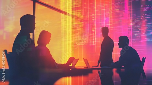 Business Meeting with Silhouetted Figures in Vibrant Modern Office