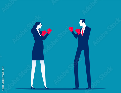 Business people with boxing. Competition vector concept