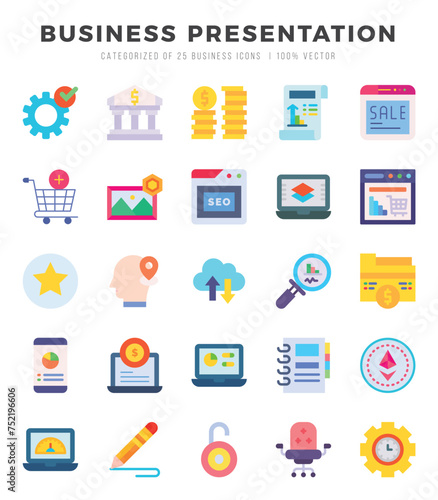 Business Presentation Icons Pack. Flat icons set. Flat icon collection set. Simple vector icons.