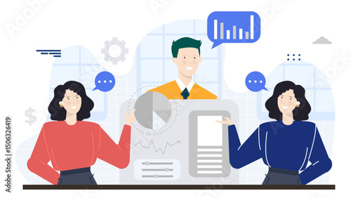 Business professionals analyzing visual data during a meeting. Suitable for presentations, financial reports, team collaborations, business concepts.