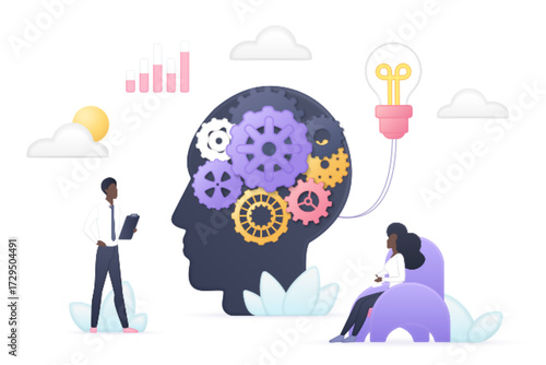 idea, teamwork, brainstorming, innovation, creativity, brain, gear, mind, business, development, concept, solution, thinking, planning, analysis, intelligence, process, strategy, management, success, professional, discussion, meeting, productivity, growth, research, technology, imagination, vision, leadership, communication, project, design, progress, learning, cognition, education, psychology, insight, abstract, modern, digital, workplace, office, people, collaboration, vector, isolated, white, background