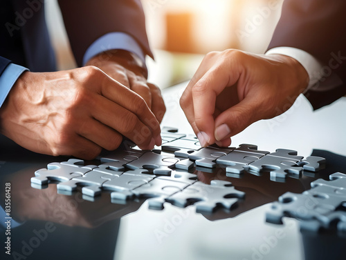 Business puzzle, Colorful 3D Business Puzzle, Business people joining puzzle together, teamwork and unity in business concept