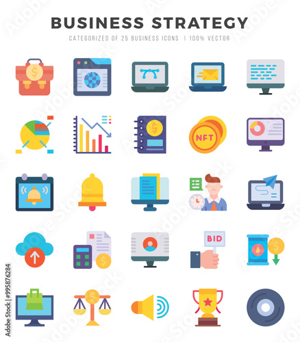 Business Strategy Flat icons collection. 25 icon set in a Flat design.