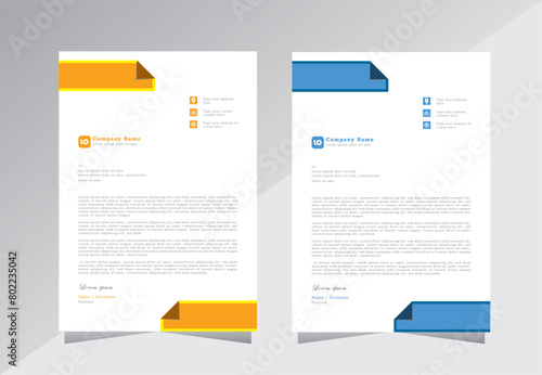 Business style letterhead template design, Corporate modern simple clean letterhead with blue and yellow print ready colour, vector template,