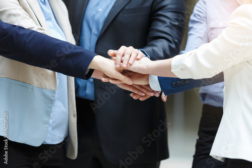 Business team hands together, collaboration concept of teamwork