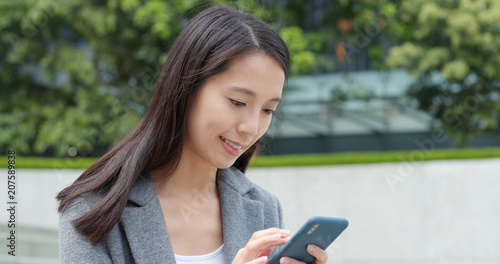 Business woman sending sms on cellphone