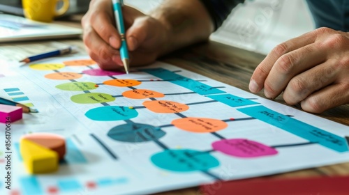 business, flowchart, desk, office, analysing, strategy, planning, project, management, marketing, businessman, entrepreneur, startup, work, workplace, organisation, process, workflow, chart, diagram, datum, analysis, research, development, innovation, creativity, solution, success, goal, target, achievement, closeup, crayons