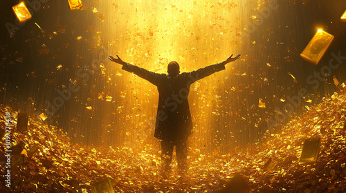 money, gold, rain, businessman, success, wealth, rich, celebration, abundance, finance, gold, luxury, fortune, prosperity, achievement, earning, profit, investment, growth, economy, financial, market, banking, business, banknote, cash, currency, treasure, gamble, casino, succeed