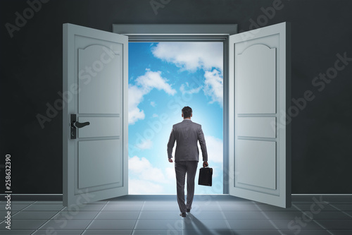 Businessman entering big large door