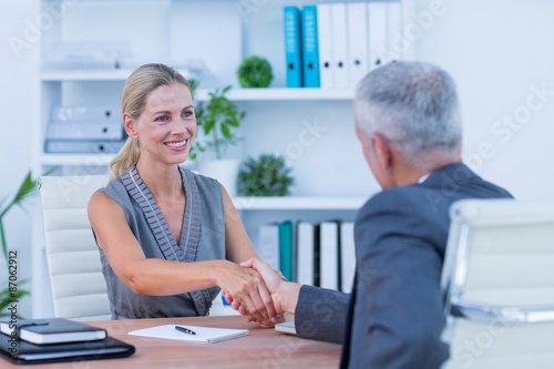 mature adult, woman, female, caucasian, man, male, businessman, businesswoman, business, professional, job, career, office, workplace, staff, businessperson, colleague, partner, partnership, co-worker, sitting, working, desk, computer, using, typing, keyboard, screen, technology, happy, smile, smiling, blonde hair, pretty, indoor
