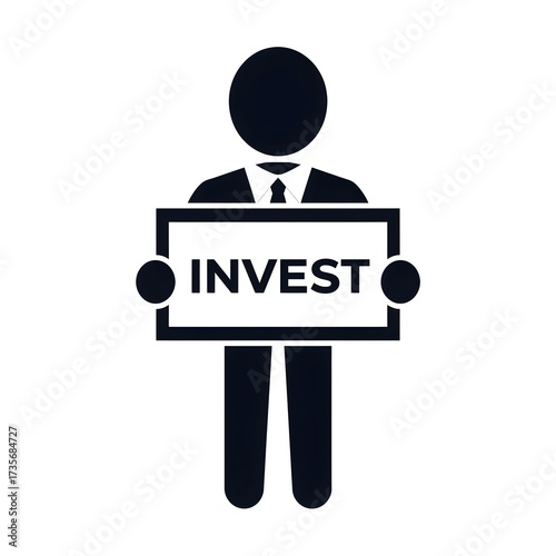 Businessman Holding Invest Board Icon for Finance Profit and Business Growth Concept