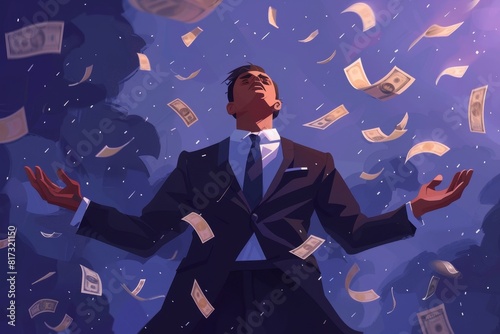 Businessman in Suit Holding Money Falling From Hands. Generative AI