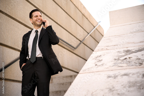 man, business, suit, phone, communication, professional, confident, work, modern, formal, smile, businessman, career, success, corporate, mobile, happy, sunlight, city, office, connection, lifestyle, executive, urban, job, men at work, person, charisma, talking, smart, fashion, young, male, modernity, positivity, leadership, entrepreneur, innovation, technology, industry, achievement, toothy smile, attaching
