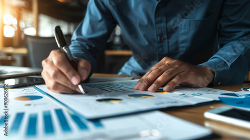 Businessman preparing for a financial audit with detailed data analysis market conditions