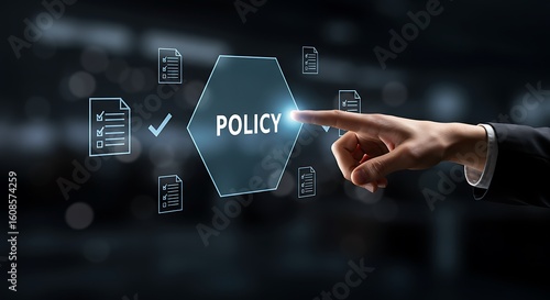 policy, compliance, business, law, legal, agreements, document, regulation, governance, concept, corporate, contract, decision, hand, finger, touch, pointing, digital, interface, virtual, screen, paperwork, checklist, approval, icon
