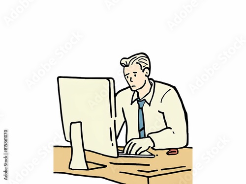 computer, business, laptop, businessman, office, cartoon, work, working, people, illustration, vector, technology, men at work, person, manager, cyberspace, suit, notebook, standing, desk, man, sitting, holding, boss