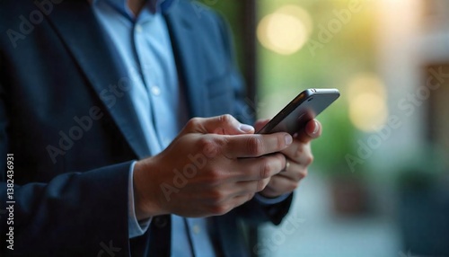 Businessman Using Smartphone Close up Hands Modern Technology Professional Communication Mobile