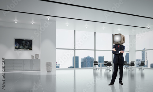 Businessman with an old TV instead of head.