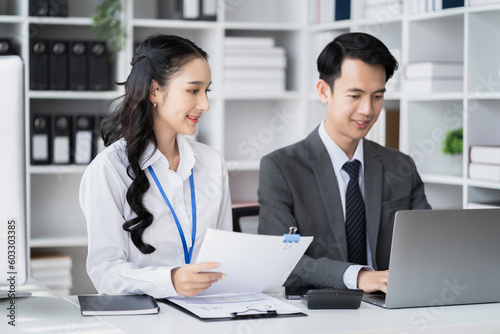 Businessmen team or financial data analysts working with tablets and laptop computers and data graphs together. Plan to analyzing projects in the office.