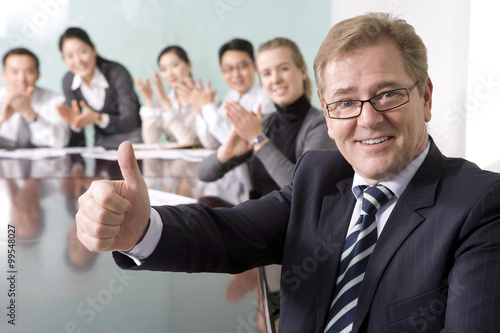chinese, businessperson, thumb up, good news, applause, excitement, exhilaration, business, expertise, office worker, modern, success, office, people, celebration, leadership, cooperation, occupation, professional occupation, lifestyle, working, desk, asia, beijing, china, east asia, day, indoor, close to, togetherness, teamwork, team, caucasian, businessman, male, man, mature adult, businesswoman, female, woman, missy, young adult, adult, adults only, achievement, tied-up, cheerful, joy, enjoyment, motivation, meeting, side by side, gesticulate, confidence, strength, sitting, well-dressed, full suit, attaching, photo, color image, front view, waist up, horizontal, smiling, toothy smile, portrait, selective focus