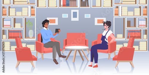 protection, protective, disease, epidemic, outbreak, virus, prevention, respiratory, safety, quarantine, pandemic, infection, protect, distance, horizontal, interior, office, working, sitting, man, businessman, businessperson, meeting, discussing, communication, team, teamwork, businesswoman, woman, brainstorming, couple, african american, smile, consultation, emotional, listening, mind, mental, patient, professional, psychoanalysis, psychological, psychologist, psychology