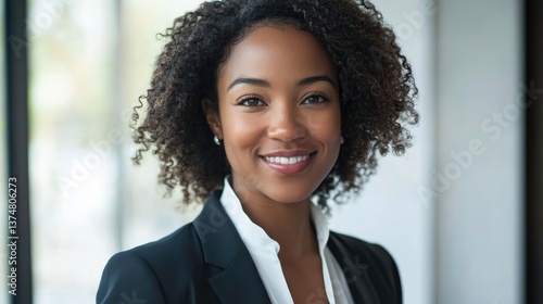 Businesswoman Dressed in a Suit, Smiling with Assurance