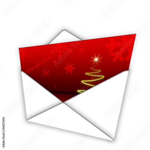 Busta da lettere con cartolina di natale e albero fiocchi neve