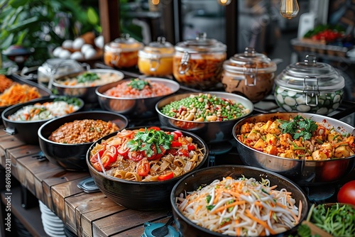 thai, feast, spring roll, curry, colourful, stall, vibrant, dish, spicey, cookery, market, noodle, shrimp, vegetable, chicken, bowl
