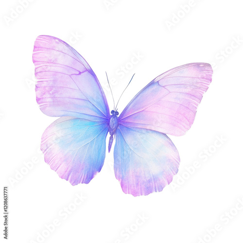Butterfly with striking pattern on wings on transparent background in retro style.